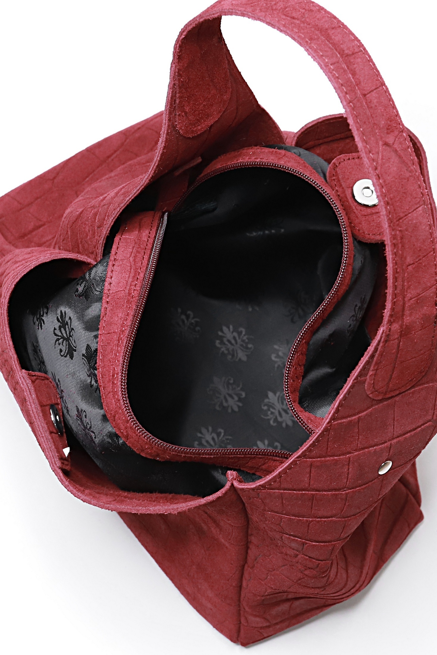 Сумка частично на подкладке, с карманом-перегородкой, закрывающимся на застежку-молнию, с окантовкой внутренних швов.