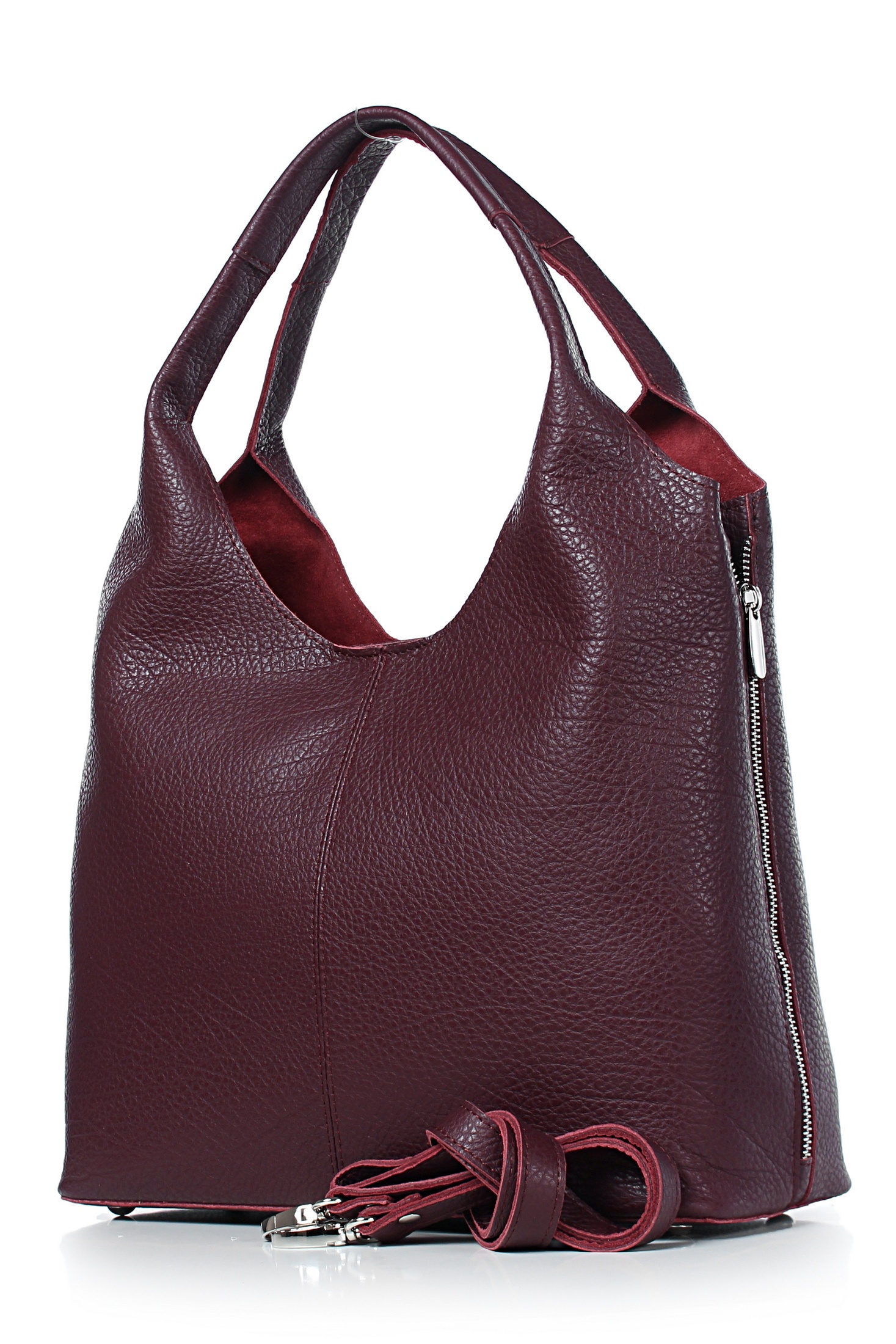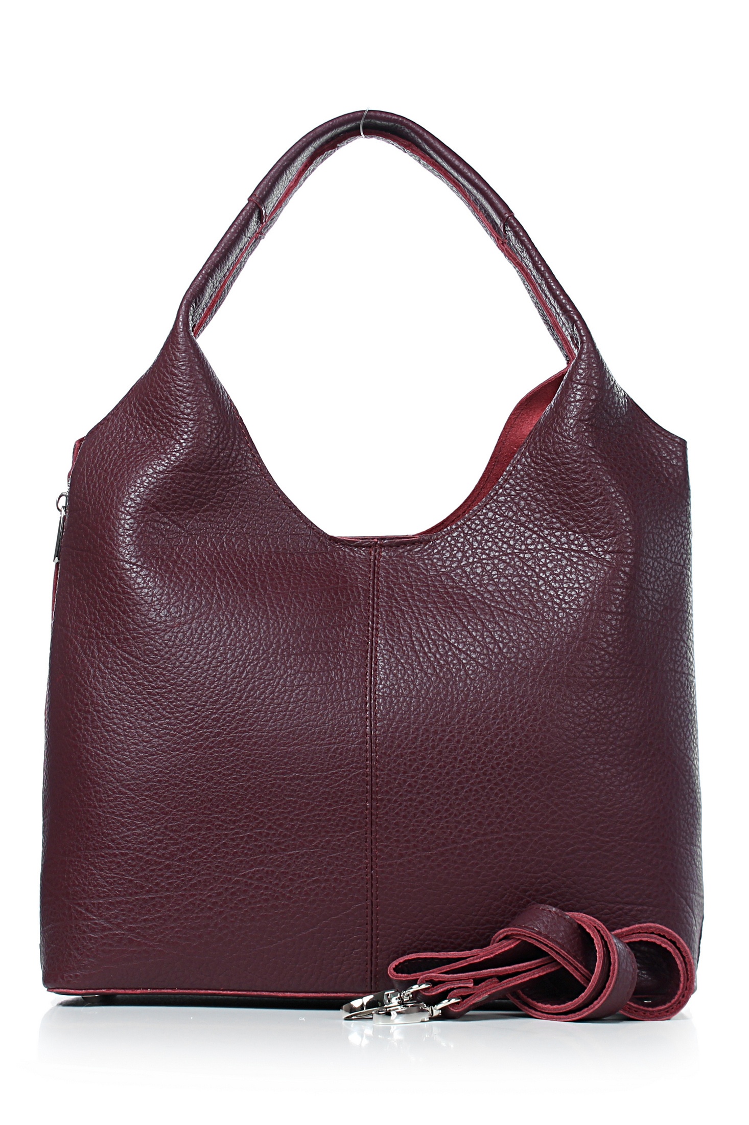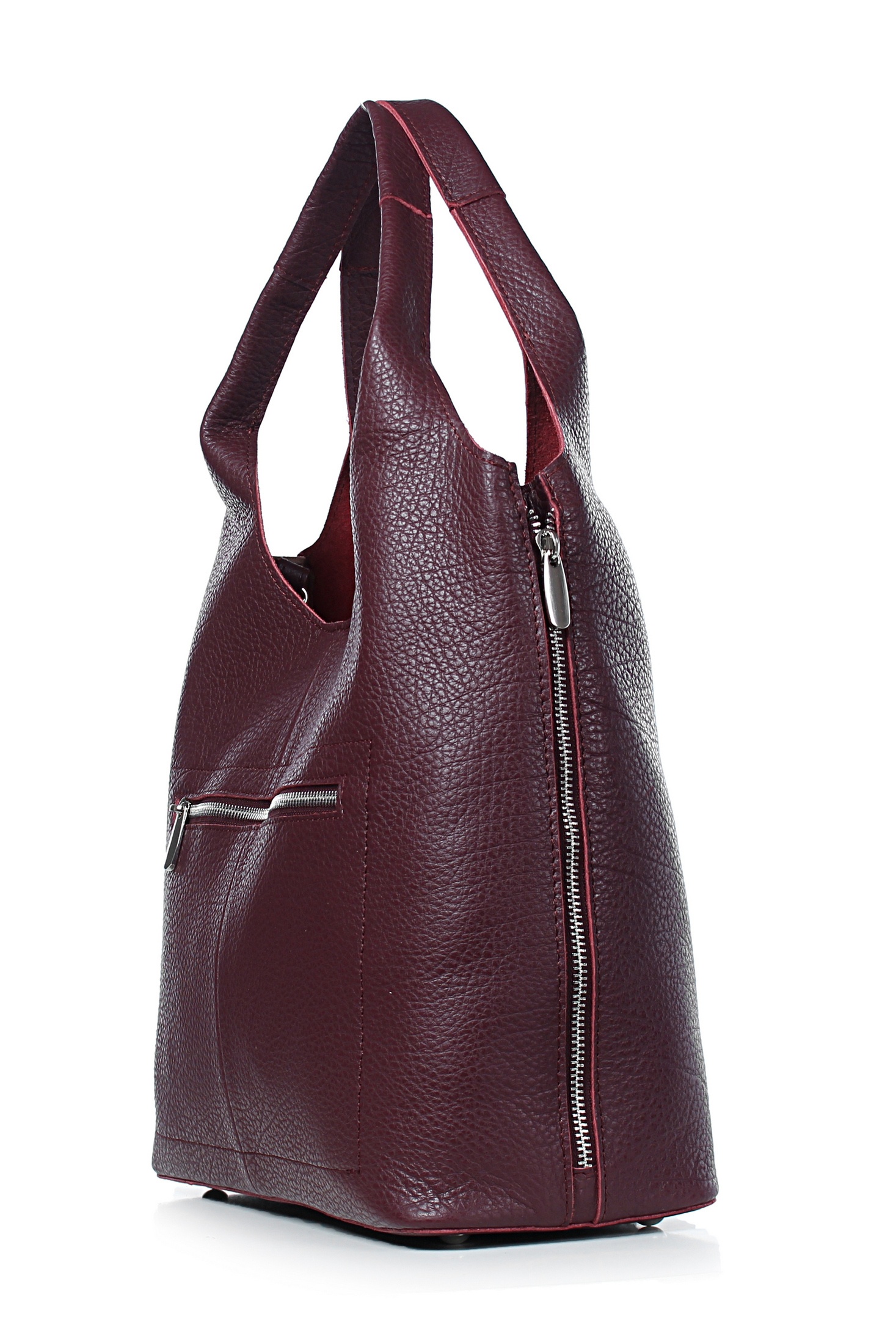 Сумка на три отделения, одно отделение закрывается на застежку-молнию, два отделения закрываются малым клапаном на замок-магнитку, с карманом на задней стенке, закрывающимся на застежку-молнию, с декоративной застежкой-молнией по боковым сторонам стенок, с двумя ручками длиной 360+-10 мм, со съемной нерегулирующейся ручкой-ремнем длиной 1055+-10 мм, с двумя внутренними держателями вкладыша. Цвет фурнитуры - никель.