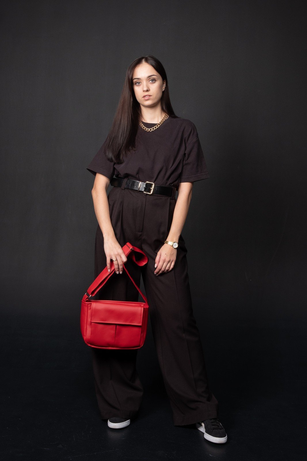 Стильная и легкая женская сумка выполнена из качественной экокожи PU. Практичная эстетичная кросс-боди среднего размера мягкая и вместительная. Модная, необычная и небольшая форма подойдет для повседневного использования. Длинная, широкая шлейка регулируется по длине. Внутри одно отделение и карман на молнии.