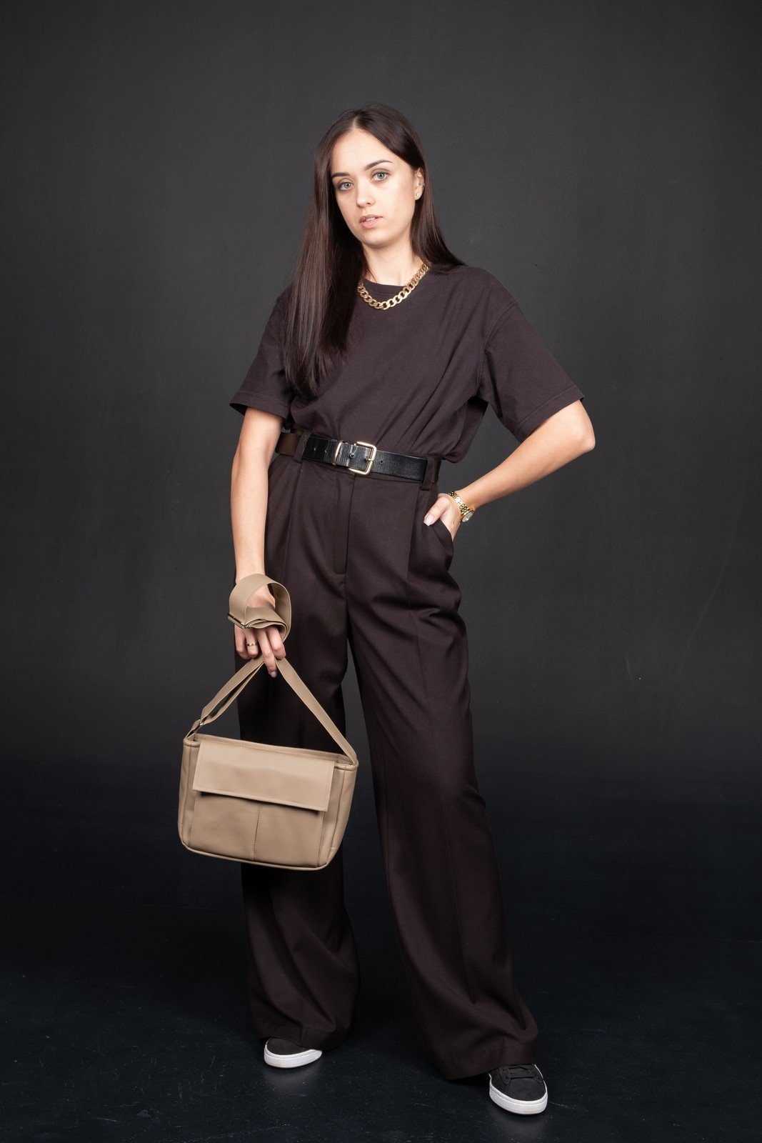 Стильная и легкая женская сумка выполнена из качественной экокожи PU. Практичная эстетичная кросс-боди среднего размера мягкая и вместительная. Модная, необычная и небольшая форма подойдет для повседневного использования. Длинная, широкая шлейка регулируется по длине. Внутри одно отделение и карман на молнии.