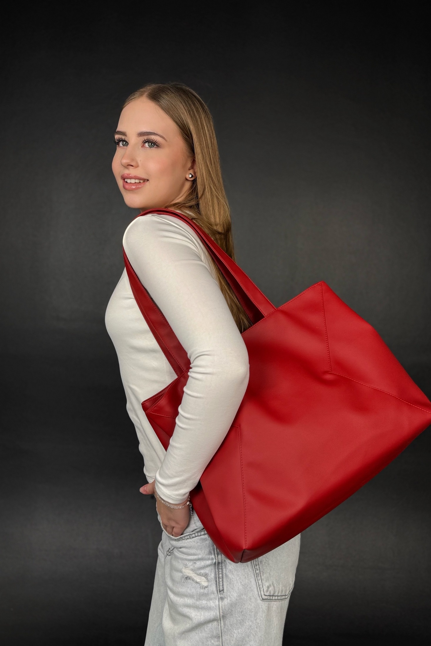 Стильная, удобнаая женская сумка. Закрывается на молнию. Внутри одно отделение с большим карманом на молнии. Карабины по бокам сумки делают ее компактной и очень привлекательной. Сделана из премиальной кожи. Качественная подкладка. Габариты: ширина - 51 см, высота - 30 см, высота ручек - 28 см, глубина сумки - 16 см.