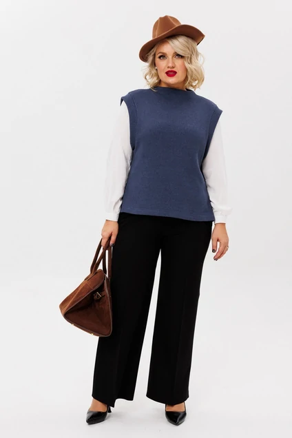 Бренд белорусской женской одежды больших размеров Anastasia представляет жилет женский. Очень комфортный и приятный на ощупь. Станет неотьемлемой частью вашего гардероба в холодное время года. Подойдет для повседневной носки (работа, офис, прогулки). Достаточно дополнить его соответствующими предметами из вашего гардероба: блузка, майка, водолазка, гольф, свитер, лонгслив, свитшот. Жилет из трикотажного вязанного полотна прямого силуэта, по бокам разрезы. По спинке и полочке цельнокроенная стойка с отворотом. По проймам отрезные планки. Это повседневный вариант на каждый день для занятий в школе или для офиса, на работу или на прогулку. Наденьте его на деловую встречу, официальное мероприятие, школьное торжество. Модель подойдёт для образа в университет или колледж. Этот предмет одежды подчеркнет вашу элегантность и сделает образ более женственным. Одежда для женщин больших размеров и не только, по отличным ценам и высокого качества - это Anastasia! Добавляете нас в любимые бренды и вы всегда будете в курсе всех акций и новинок! Новинка осень 2024! Хороших покупок от «Анастасия». Длина по спинке от плечевого шва -63 см
