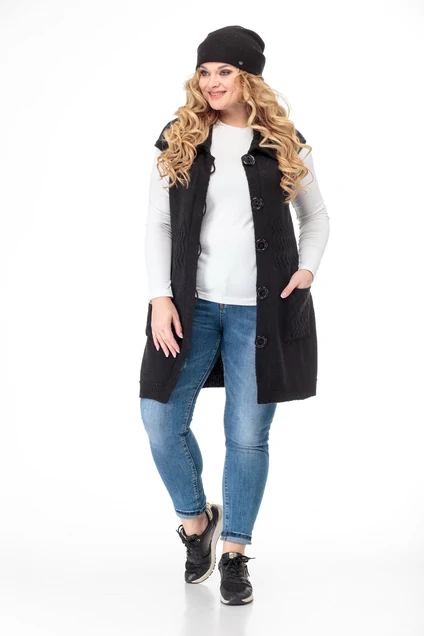 Жилет является универсальным предметом гардероба. Он хорошо сочетается с брюками, юбкой, платьем. Вязаный жилет из мягкой пряжи с ажурными элементами непременно дополнит ваш зимний гардероб. Удлинённый, с воротником и накладными карманами, с застежкой на пуговицы по всей длине. Жилет выполнен в чёрном и бежевом оттенках. Отличный выбор каждый день! При съемке в образе использованы модели AnelliStyle – брюки – 518, лонгслив – 897 белый. Ограниченное количество!