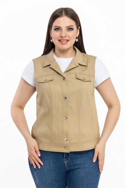 Жилет из денима на пуговицах с карманами. Белый, как известно, невероятно популярен этим летом, и к тому же такой жилет будет эффектно смотреться как с юбками, так и с брюками.