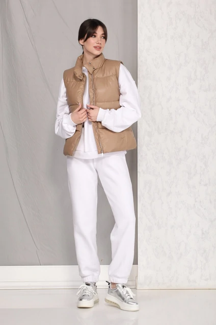 Жилетка без рукавов, прямого силуэта, длиной до линии бедер.