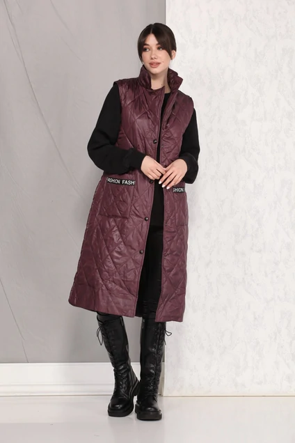 Жилетка длинная, без рукавов, слегка приталенного силуэта.
