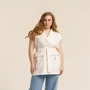 Этот стильный жилет прямого покроя создан для современного женского гардероба. Основной цвет жилета - светло-серый с деликатным чередующимся геометрическим принтом, придающим изделию элегантную текстуру. Модель оснащена классическим пиджачным воротником, что добавляет официальности образу. Застежка на петли и пуговицы подчеркивает традиционность дизайна, в то время как карманы с клапанами, расположенные в передних подрезах, сочетают в себе практичность и стиль. Наличие подкладки гарантирует комфорт при носке. Этот жилет прекрасно сочетается с брюками или юбками, что делает его идеальным выбором как для бизнес-встреч, так и для повседневной носки.