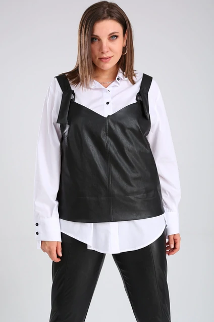 GRATTO предлагает очень интересную модель-жилет на широких шлейках. Шлейки регулируются с помощью полуколец, которые также выглядят , как декоративный элемент. Жилет можно носить, как на платье вторым слоем, а также как и представлено на фото. Жилет-универсальный предмет гардероба, при помощи которого можно создать сложные многослойные образы. На фото представлен с брюками и блузами GRATTO.