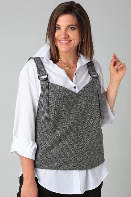 GRATTO предлагает очень интересную модель-жилет на широких шлейках. Oversize жилет на любой сезон. Популярный орнамент на ткани "елочка"-стильное дополнение к любому предмету гардероба. Жилет на шлейках, которые регулируются с помощью полуколец, также они выглядят , как декоративный элемент. Жилет можно носить, как на платье вторым слоем, а также как и представлено на фото. Прием многослойности помогает интересно и стильно обыграть базовые вещи: носите данную модель в офис с рубашкой, платьем-рубашкой, брючным и юбочным костюмом, джинсами в модных повседневных и городских образах. Жилет способен верно расставить акценты! Отлично сочетается с брюками 3230 и рубашками в качестве элегантного офисного костюма. Визуально стройнит фигуру, делая ее утонченной и женственной. Универсальная жилетка подходит на любой тип фигуры. Широкая размерная линейка от 50 до 60! размера.