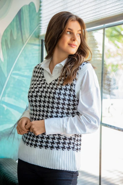 Жилет женский вязанный с V-образным вырезом горловины. Длина изделия - 68 см Размер универсальный с 42 по 48.