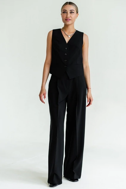 Жилет женский приталенный без лацканов, однобортный, с подкладкой. Недлинная приталенная нарядная женская жилетка отлично подойдет для девушек, желающих визуально скорректировать свою фигуру. Если вы хотите выглядеть стройнее, стоит отдать свое предпочтение этому варианту. Также наш женский офисный жилет будет выгодно смотреться на невысоких девушках. Женская жилетка в деловом стиле в классической расцветке - отличный выбор. Идеально будет смотреться с брюками, юбкой, джинсами или бермудами. Строгий, но в тоже время и интересный женский деловой образ - отличный вариант для трудовых будней, учебы или праздничных торжеств. К нашей жилетке можно подобрать брюки 2052 и жакет 3037. Подкладка - 55% полиэстер, 45% вискоза