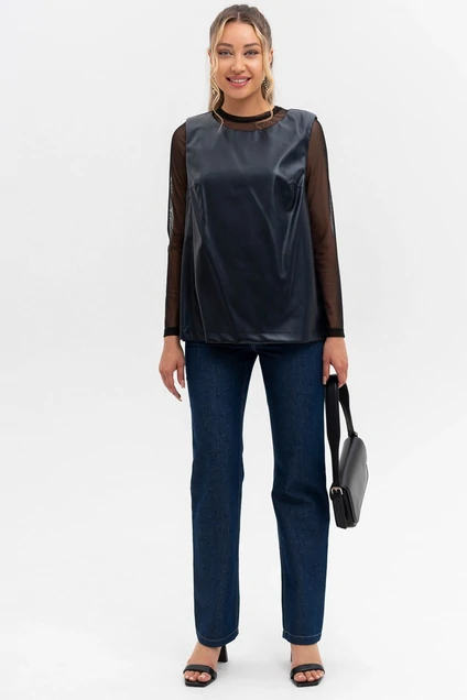 Модный лаконичный жилет из экокожи свободного силуэта украсит гардероб любой модницы. В сочетании с шифоновым платьем или объемной рубашкой создадут незабываемый образ. Детали: без рукавов, горловина округлая, нагрудные вытачки, по спинке средний шов переходящий в разрез высотой 43 см.