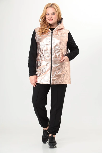 Легкий, стильный, практичный утепленный женский жилет без рукавов на синтепоне, из плащевой ткани, прямого силуэта с центральной застежкой на тесьму-молнию. По полочкам – отрезные кокетки, горизонтальные подрезы на уровне талии в которых обработаны карманы. Спинка цельная. Капюшон с центральной частью. Низ изделия слегка заужен за счет вытачек. Жилетка на саржевой подкладке. Данная модель прекрасно сочетается практически с любой одеждой и обувью, подходит для осени и ранней весны. В прохладную погоду жилет подарит уют и защитит Вас от ветра и осадков. Позвольте себе комфорт и отличное качество!