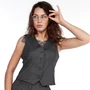 Женский жилет из костюмной ткани черного цвета представляет собой универсальный элемент делового гардероба. Модель полуприлегающего силуэта обладает элегантной застежкой на петли и пуговицы, дополненная аккуратными рельефами на передней части. Спинка жилета оснащена средним швом и декоративными рельефами, подчеркивающими структуру изделия. Идеально сочетается с брюками из костюмной ткани модель 2403 и юбкой модель 2421, а также входит в состав комплектов 2441 и 2445. Этот жилет станет незаменимым элементом в создании строгих и лаконичных образов.
