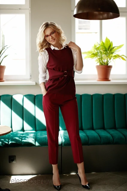 Жилет из трикотажа. Полуприлегающий силуэт, по переду имитация пояса с декоративной пряжкой