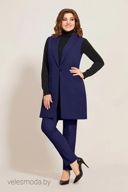 Жилет женский полуприлегающего силуэта на подкладке с центральной застежкой на одну навесную петлю и пуговицу, с пиджачным воротником. Перед укорочен. Части переда с накладными карманами, рельефными швами, идущими от проймы, нагрудной и талиевой вытачками. Спинка со средним швом, плечевыми вытачками и рельефными швами, идущими от проймы.