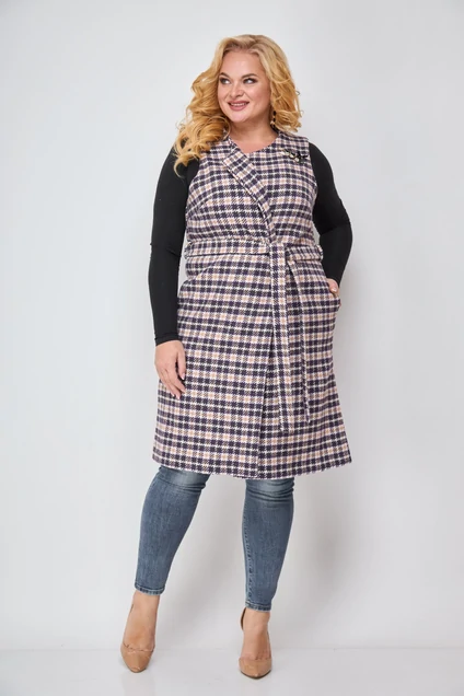 Жилет средней длинны «must have» в гардеробе этого сезона. Универсальное изделие подойдет к любому стилю одежды. Можно носить как поверх худи, так и классической рубашки, водолазки; как с кроссовками, так и на шпильке. Жилет выполнен из пальтовой ткани без подкладки, в боковых швах есть функциональные карманы, а низ дополняют разрезы. В комплект входит нарядная брошка и пояс. Длина изделия по спинке 101 (+/- 1 см). Изделие подойдет на рост 170см.