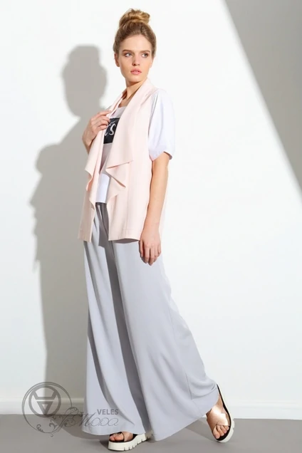 Стильный жилет без подкладки из струящейся ткани с большим драпирующимся воротником.
