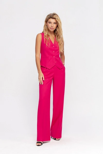 Классический жилет из текстильной ткани. Детали: жилет полуприлегающего силуэта с фигурным низом, застежка на петли и пуговицы, на подкладке