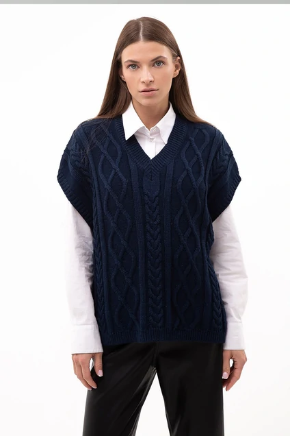Классический женский жилет должен быть в гардеробе любой модницы. Крупная трикотажная вязка и вывязанный арнамент, делают изделие максимально модным и стильным. Жилетка подходит для школы, офиса, прогулок, деловых встреч, повседневной носки. Вязаный жилет является выбором мам, которые хотят сделать школьный образ своей девочки сдержанным и модным. Связанный жилет имеет слегка укороченный силуэт, широкие рукава. Свободный крой не сковывает движения. Большой плюс жилетки в том, что она просто надевается и снимается. V вырез декорирован манжетом крупной вязки. Представленная модель в составе имеет шерсть. Ткань отлично держит форму, не растягивается. Шерстяной жилет легко очищается от загрязнений. При правильном уходе изделие прослужит вам долго. Жилетку можно носить с рубашкой, футболкой, платьем и на голое тело. В любой случае ваш образ будет самым стильным и запоминающимся.