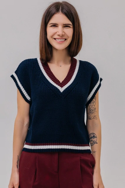 Жилет 3651Ш темно-синий+белый+бордо Romgil