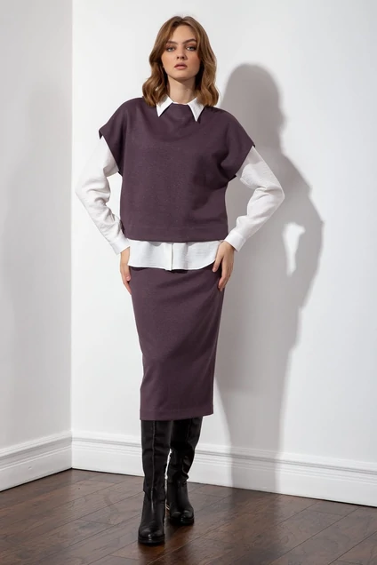 Стильный жилет из мягкого трикотажа со спущенным плечом, с вырезом горловины-лодочка.