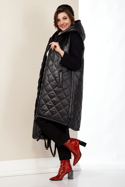 Женская удлиненная стеганная жилетка, отлично дополнит ваш осенне-весенний гардероб. Выполненна из плащевой ткани и утепленная синтепоном. Изделие на подкладке. Застежка центральная на молнии (двухбегунковая). По переду карманы прорезного типа. Капюшон не съемный. Боковые швы декорированы молнией, что позволяет создавать разрезы разной высоты. Низ изделия фигурный, спинка длиннее переда. Свободный крой обеспечивает идеальную посадку на любую фигуру, а углубленная пройма позволит носить утепленные худи, плотный трикотаж и свитшоты из различных материалов не сковывая ваших движений. Практичный, стильный жилет, очень удобный в носке и прослужит вам очень долго при аккуратном ношении и бережном уходе.