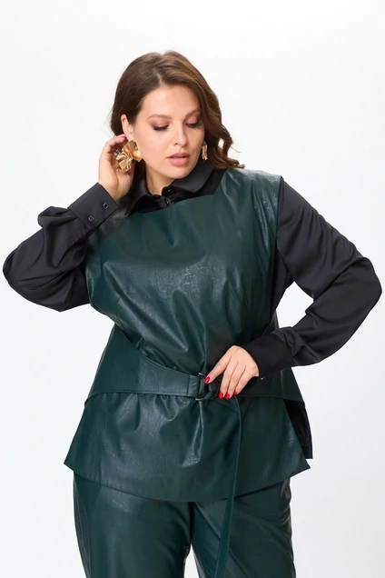 Интересный жилет с застежкой на пояс, который позволит регулировать ширину на уровне талии. Данный жилет идеально дополнит любой образ для офиса или прогулок. Выполнен из экокожи, на подкладке. Длина изделия от плеча 73 см.