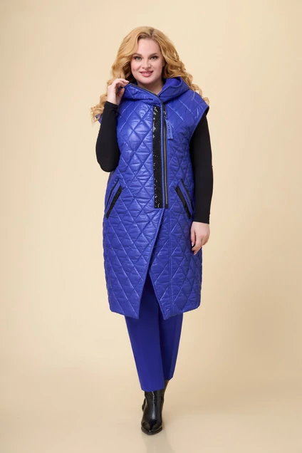 Жилет женский прямого силуэта, со спущенной линией плеча, на подкладке. По горловине капюшон. По переду прорезные карманы с листочкой. Застежка смещенная на молнию. Низ жилета фигурной формы. Отличный вариант жилета для стильных образов!
