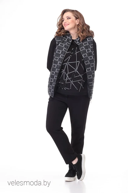Практичный и комфортный жилет из стеганой ткани на подкладке. Универсальный буквенный принт добавит изюминки в ваш обыденный образ. Длина жилета 68 см.