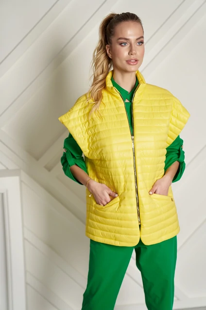 Жилет стеганный, свободный , легкий ,с карманами ,с поясом из основной тканизастежка молния спередиВоротник стойка.Жилет для низкого, среднего  и средний плюс роста, для худых ,для полных сезон:весна, лето,осень Длина 67 см.