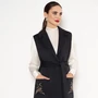 Горловина квадратная с втачным воротником пиджачного типа. Средняя длина жилетки по среднему шву спинки - 79,0 см (±1,5 см) Тип ткани: костюмно - плательная.